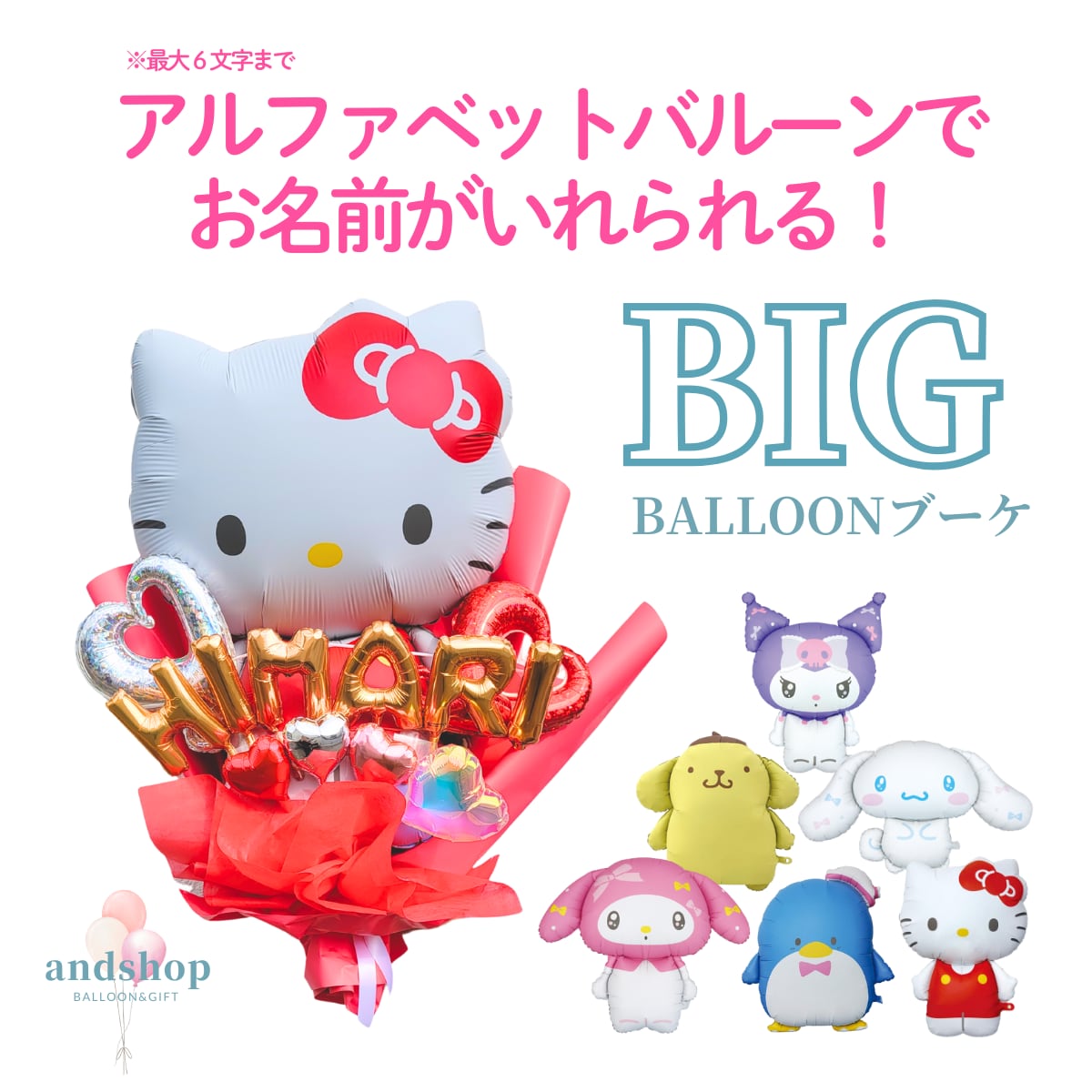 アルファベットの文字が選べる 超BIG!SNS映え!サンリオキャラクターのビッグバルーンブーケ 【成人式】【卒業】【入学式】【ブーケ】【誕生日祝い】BIGバルーン