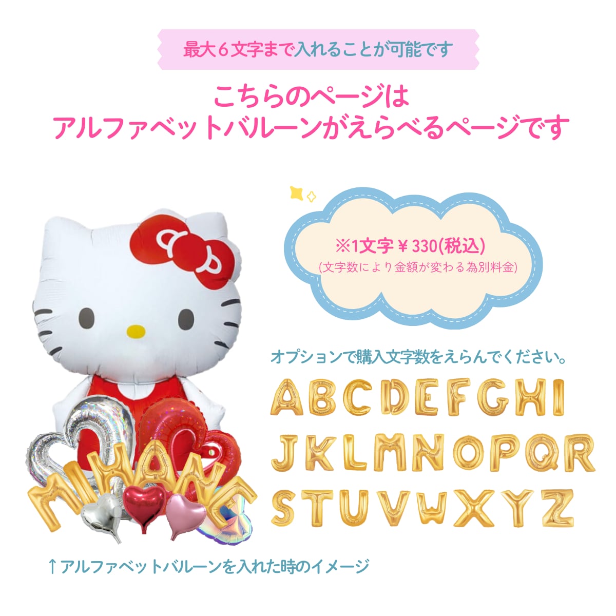 アルファベットバルーンは最大6文字までお入れできます。