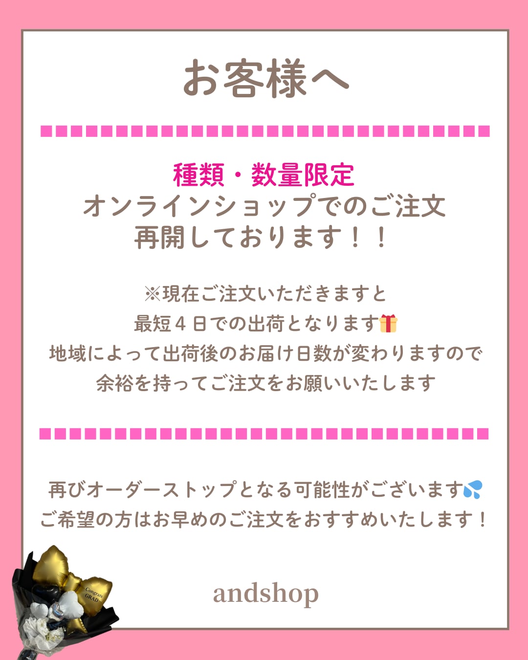 現在ご注文いただきますと、最短4営業日でのお届けとなります。